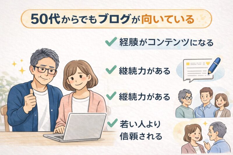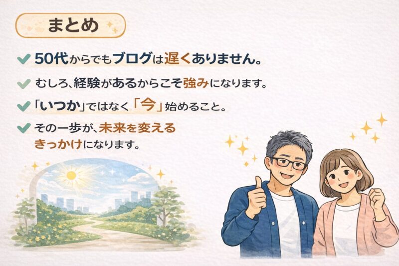 最初は本当にゼロからのスタートでしたが、今振り返ると、50代からでもブログは遅くないどころか、むしろ強みになると感じています。
